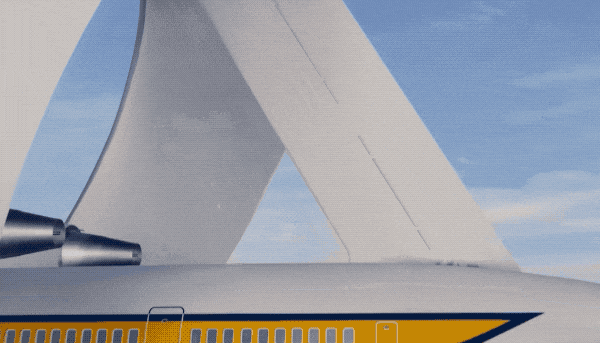 其最大的亮点就是,采用了三翼设计,也就是说在机身两侧各有三个翅膀。 还有与传统飞机不同的是,机身由复合材料制造而成,一体成型。 并且,由于机翼不储物燃料,因此看起来更纤薄。 那它燃油在哪里存放呢? 原来设计在顶上气囊中,和整个机身融为一体。 并在飞机的尾部配有两个喷气式发动机,可提供大约64000磅的推力。 可搭载大约264名乘客,时速最高可达1100公里每小时,航程则可达17000公里。