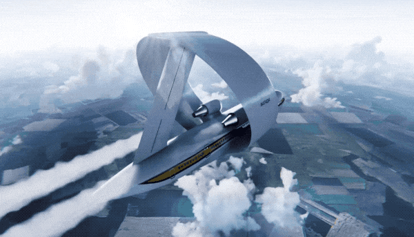 是的,你没有看错。 它只有一个机翼,并且,围绕机身形成了一个完整的圆圈。 这就是圆形机翼飞机,或者更准确地称之为“环翼飞机”。 机身长度为 52 米,机翼周长为大约 7.4 米。 同时,其向后拱起 27 度与尾翼连接,总高度则达到了 23 米。